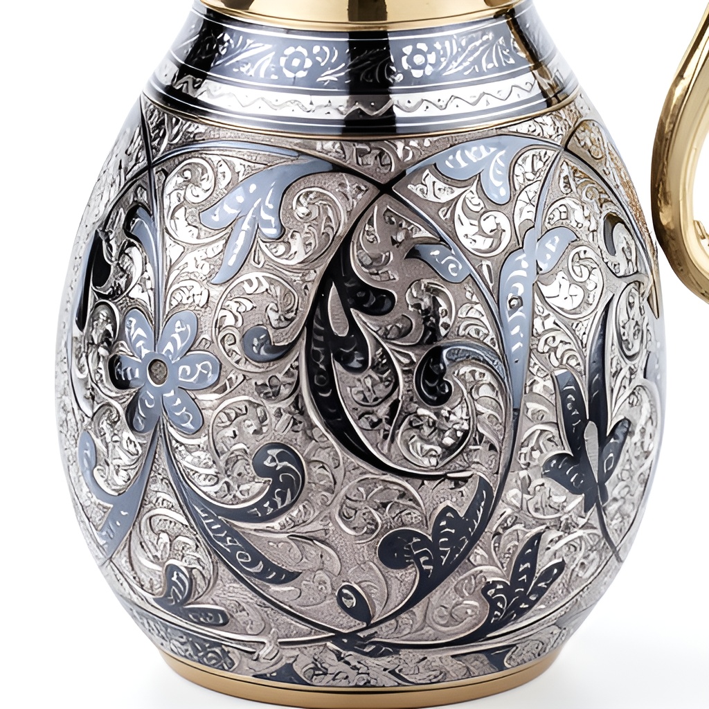 Представляем вам эксклюзивный серебряный кувшин от мастеров легендарного села Кубачи — настоящий шедевр ювелирного искусства, созданный вручную с применением традиционных техник чеканки и гравировки.