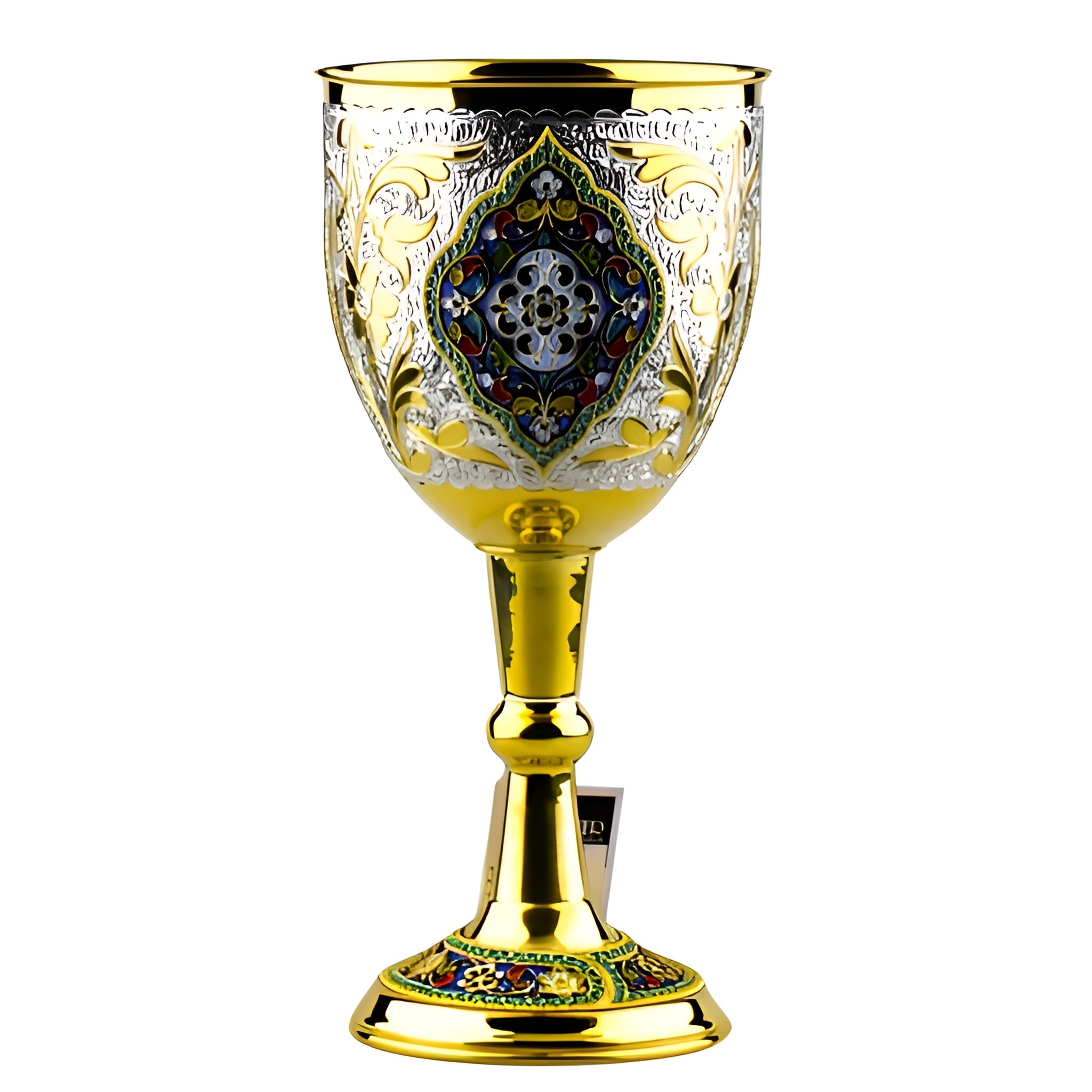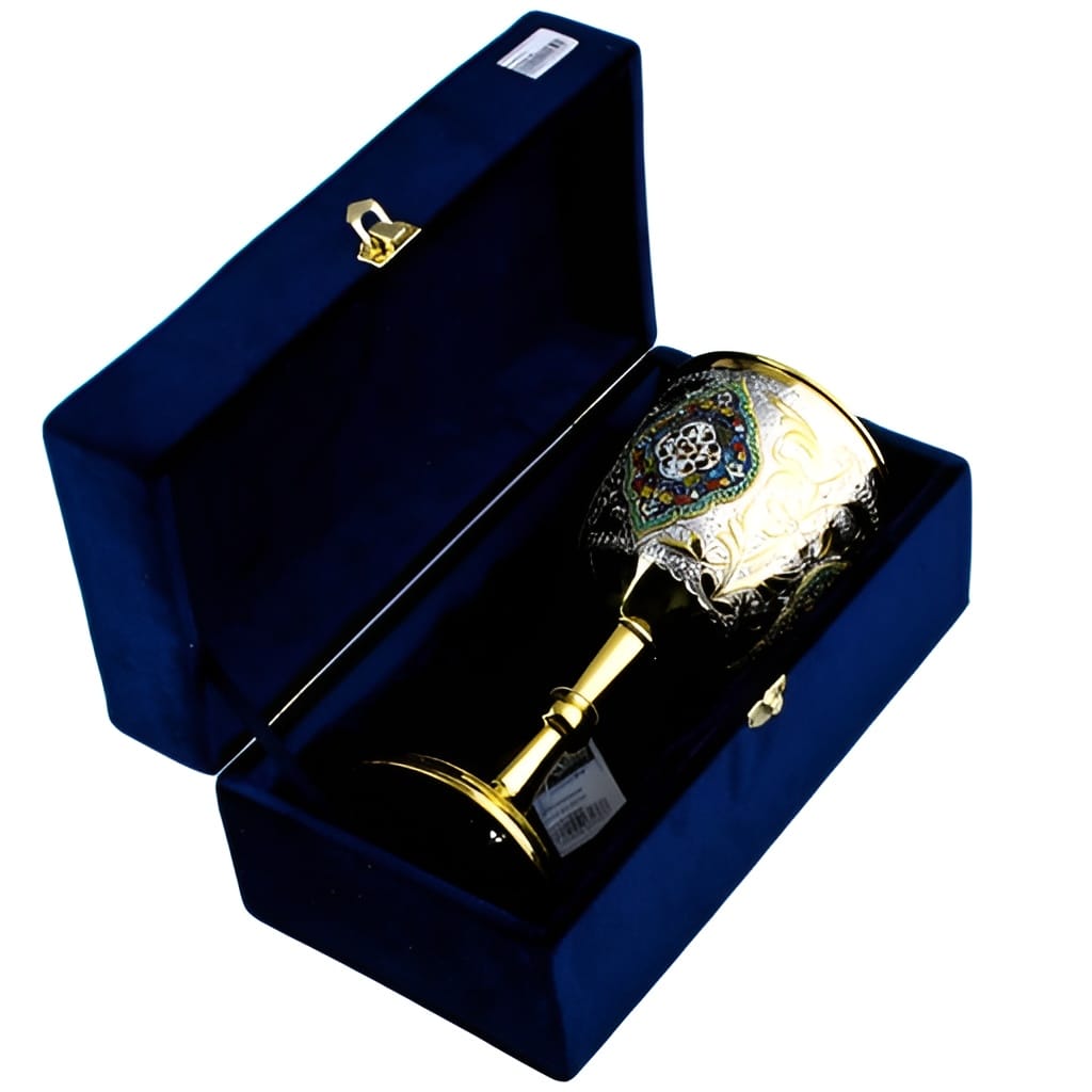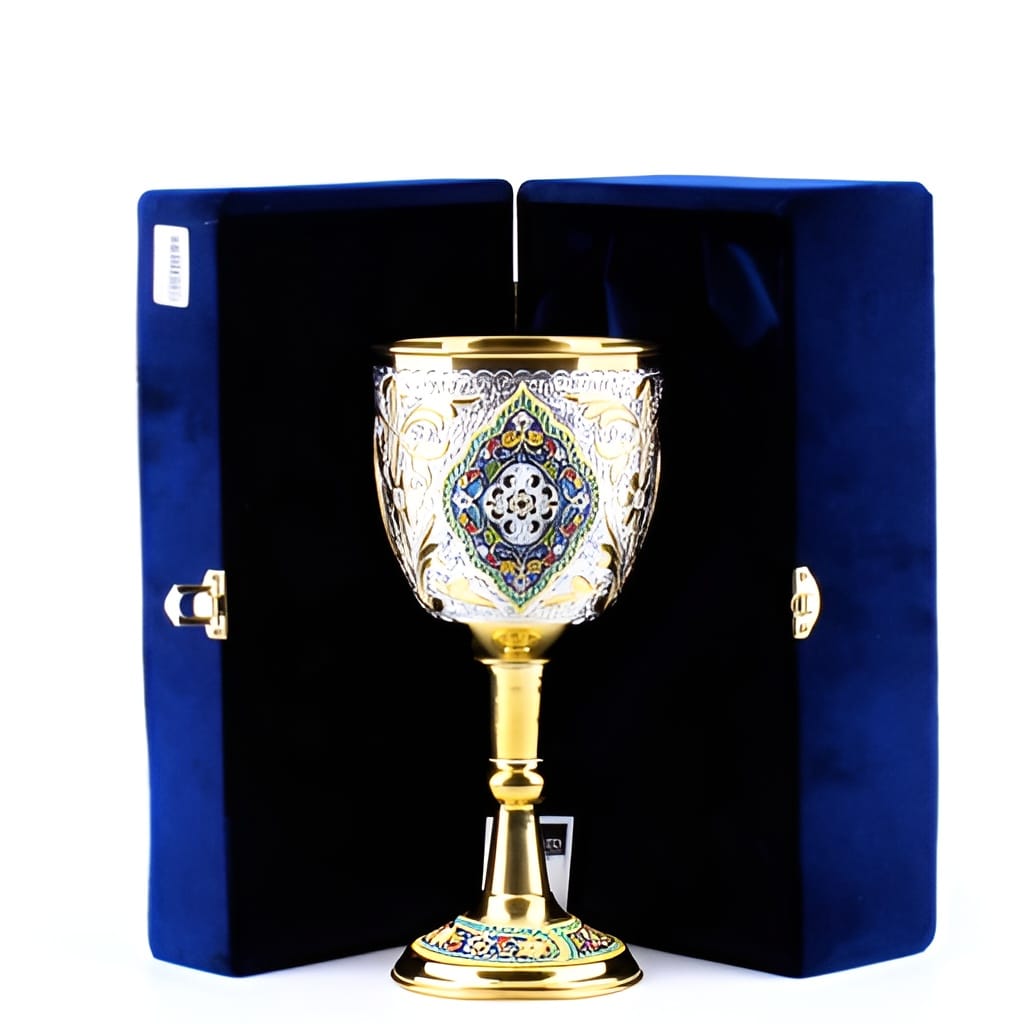 Кубок украшен позолотой и накладками из перегородчатой горячей эмали, благодаря чему он выглядит богато, торжественно и идеально подходит для официальных церемоний, наград и VIP‑подарков.