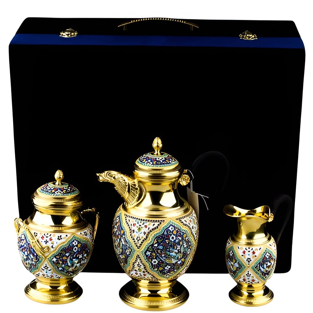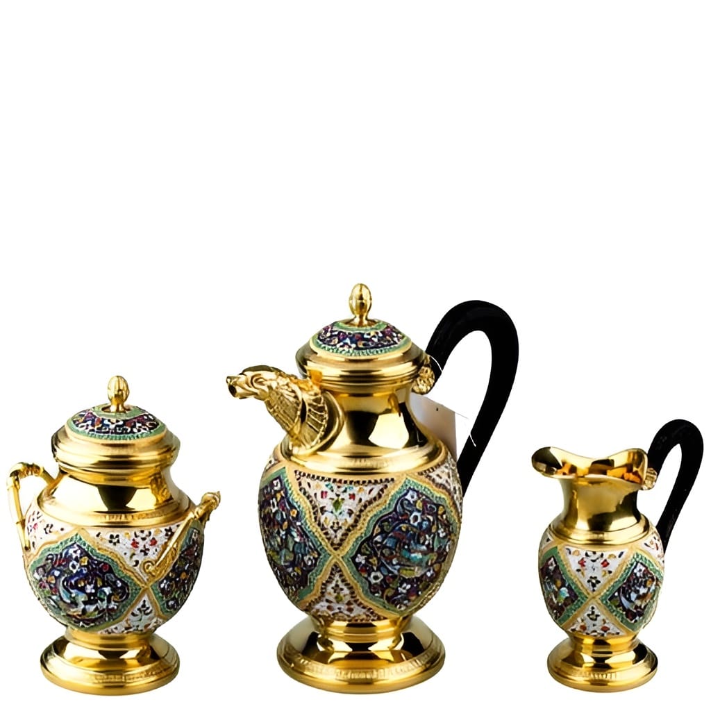 - Завершённый сервиз — кофейник, молочник и сахарница образуют гармоничный кофейный комплект.