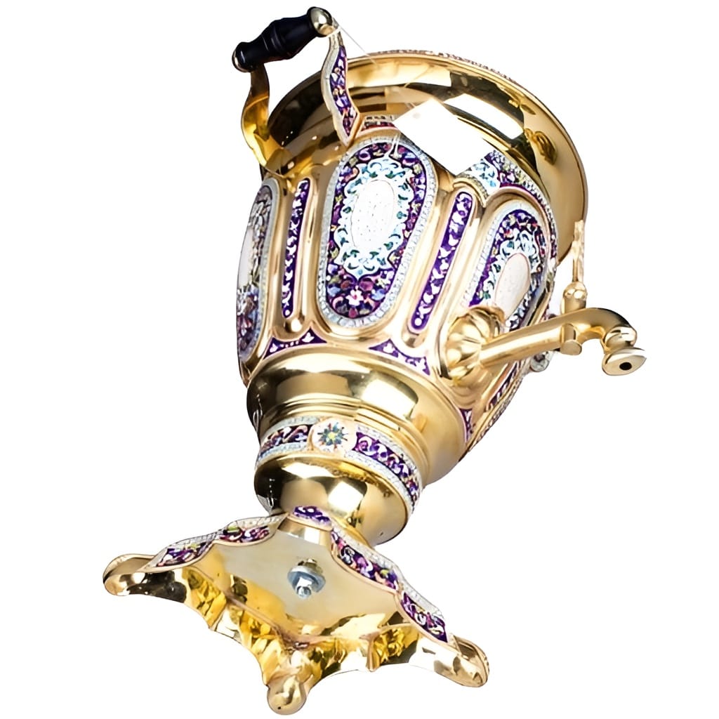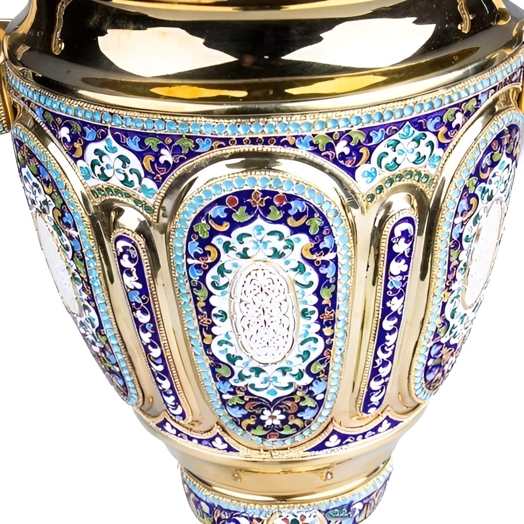Эксклюзивный серебряный самовар с эмалью Кубачи – позолоченный самовар из серебра 875 пробы