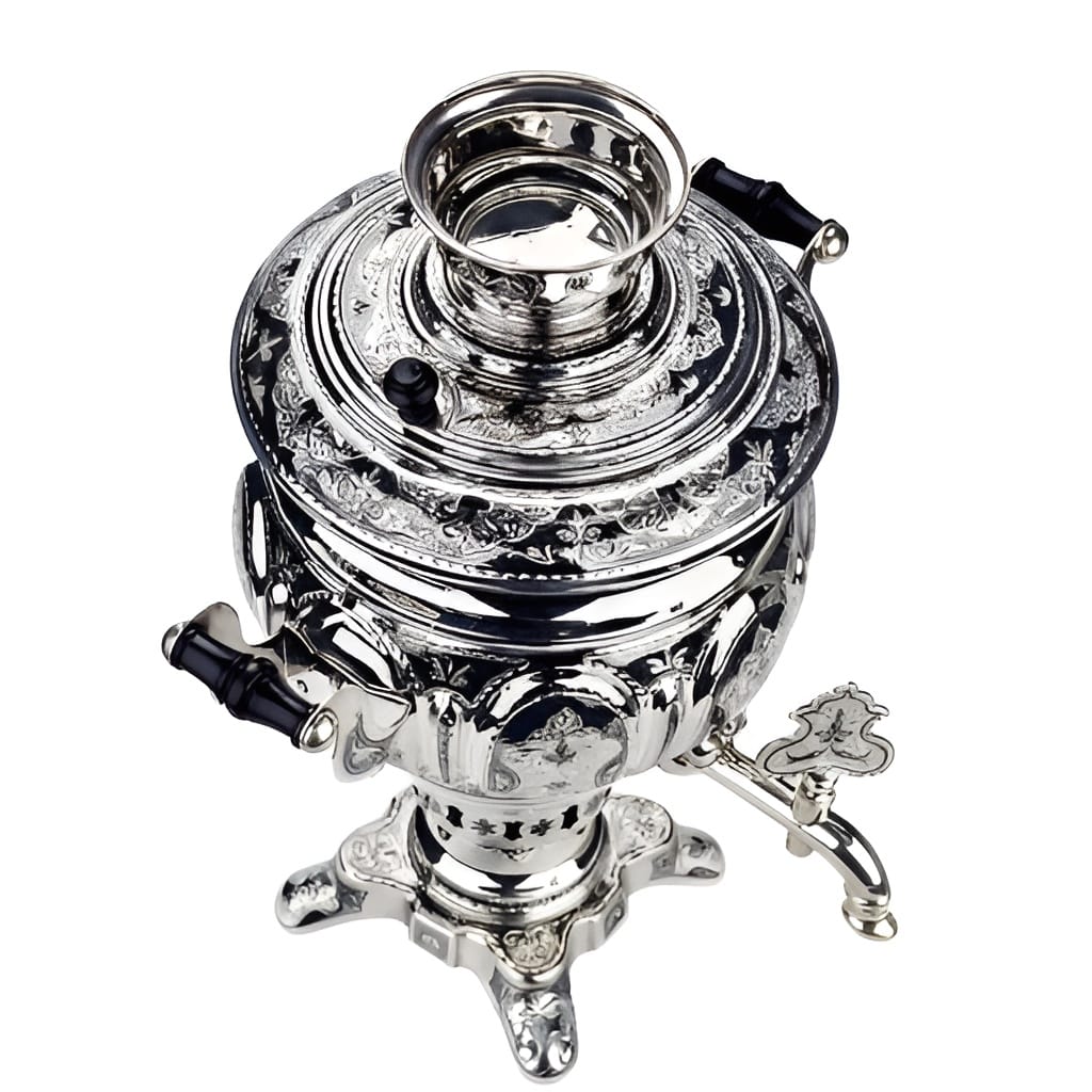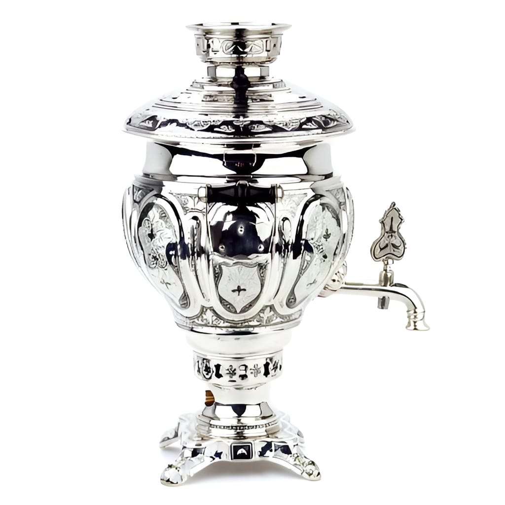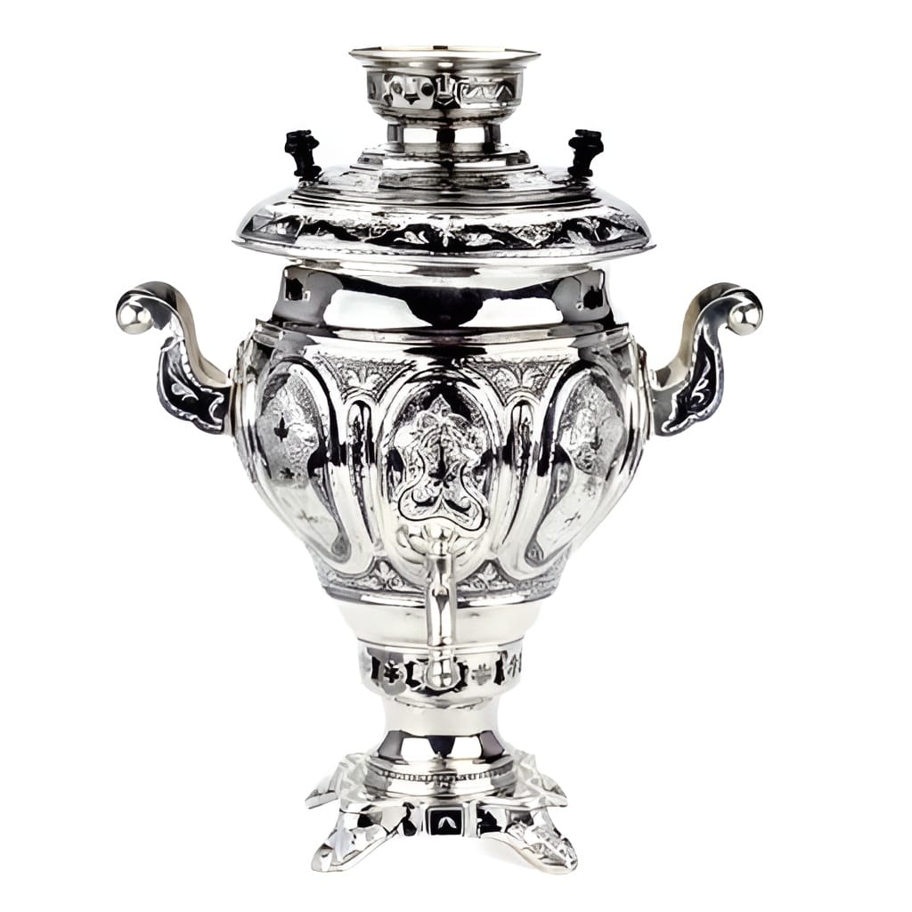 Серебряный самовар Кубачи 875 пробы это не просто предмет для чаепития, а настоящее произведение искусства. Его внушительный объем 3 литра и высота 37 см делают его центром внимания на любом столе.