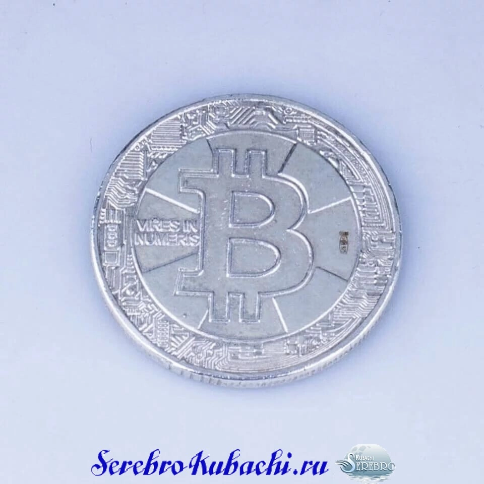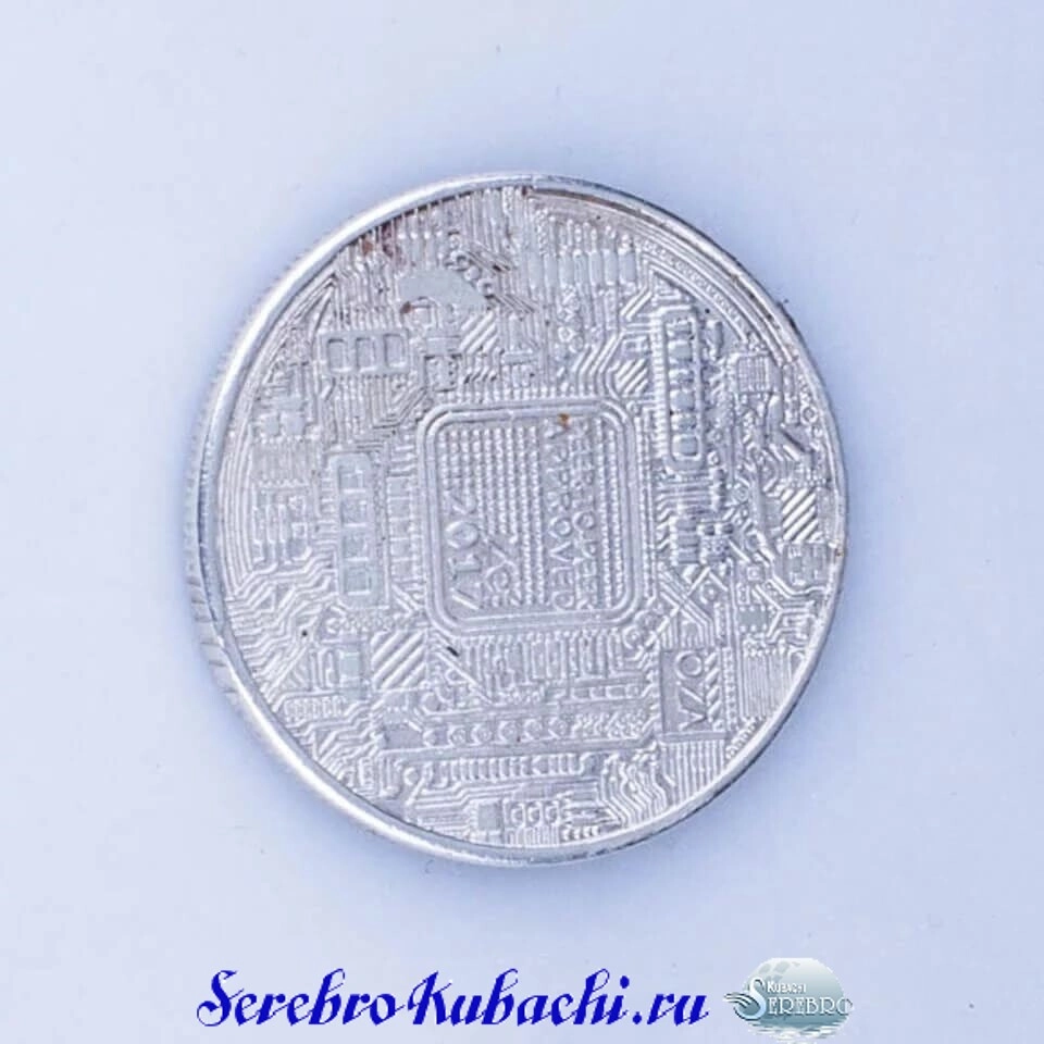 Сувенирная серебряная монета «Биткоин» из серебра 925 пробы