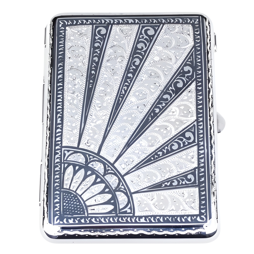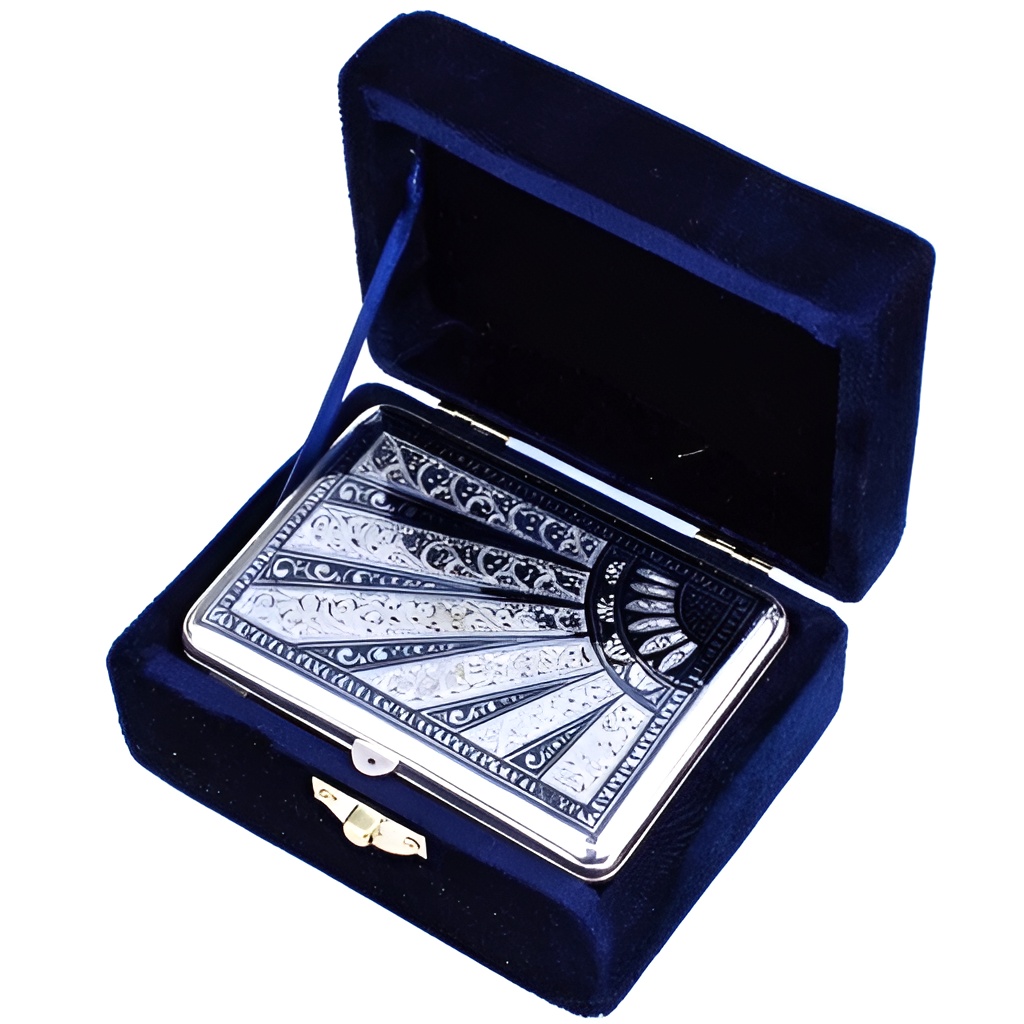 Серебряный портсигар «Солнечные лучи». Ручная гравировка мастеров кубачинского художественного комбината.