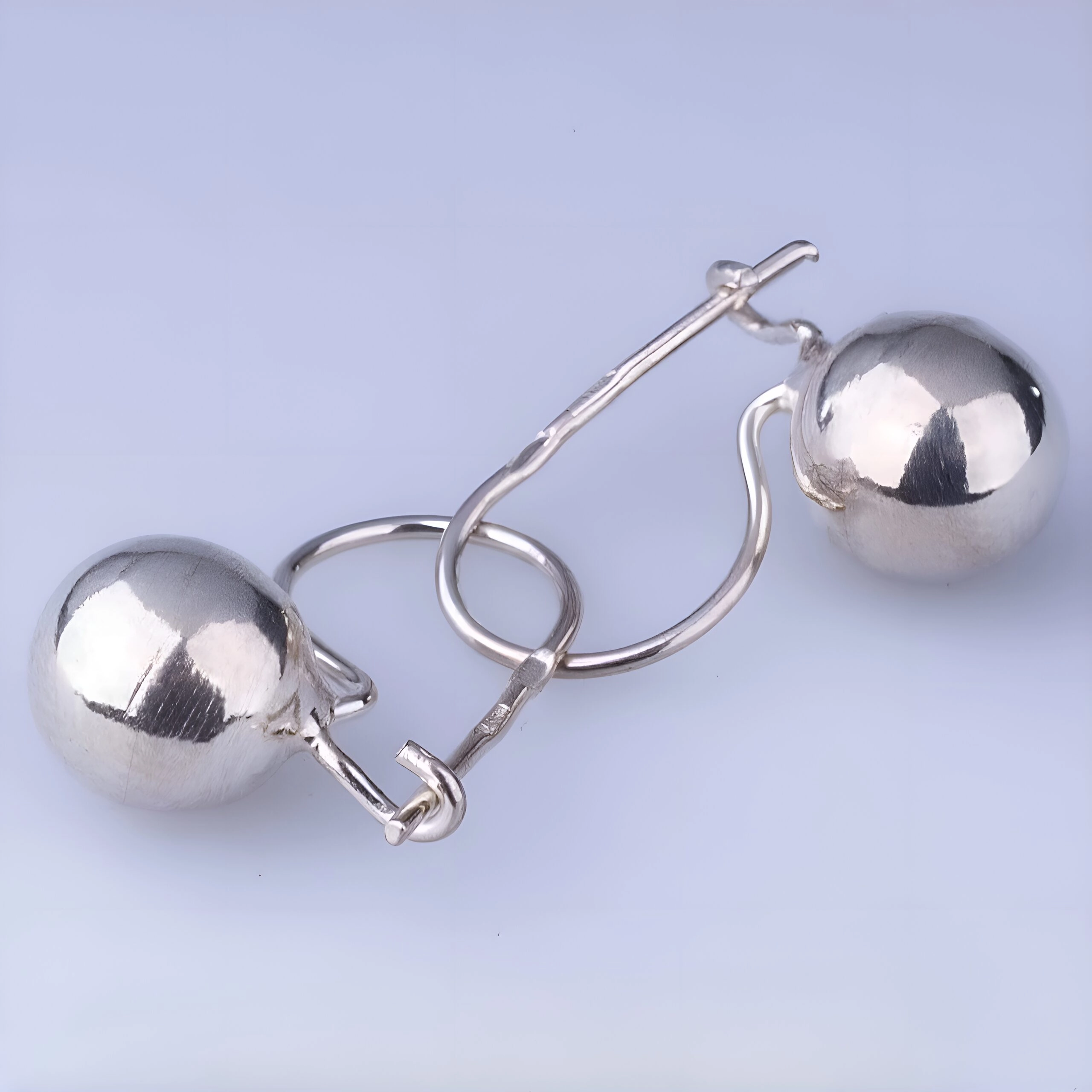Серебряные серьги полые шарики на петле, которая исполняет роль замочка. Хороший и недорогой подарок ребенку девочке.