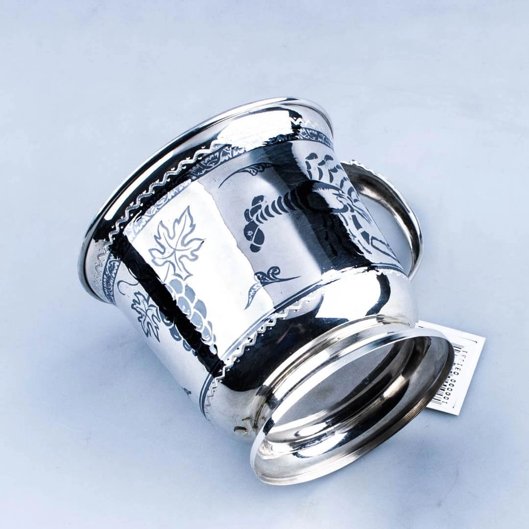 Каждая кружка создается вручную мастерами из села Кубачи, известного своими многовековыми традициями серебряного дела. Ручная гравировка и тонкая проработка деталей делают эту кружку настоящим произведением искусства.