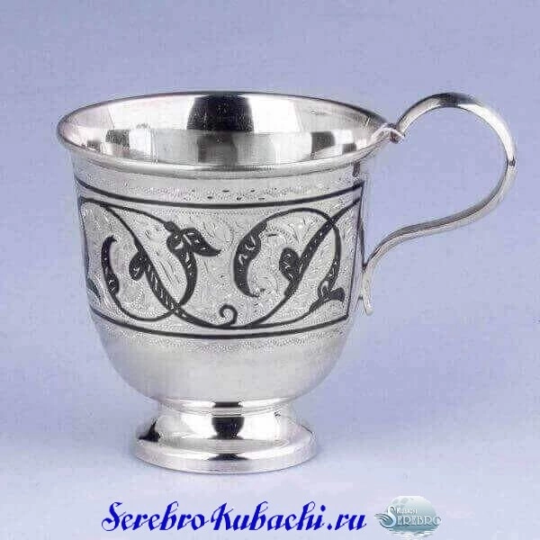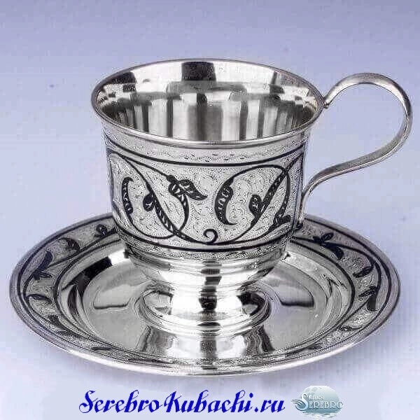 Столь красивая чашечка с блюдцем из серебра, украшенные узорами по всей форме, выглядят просто идеально.