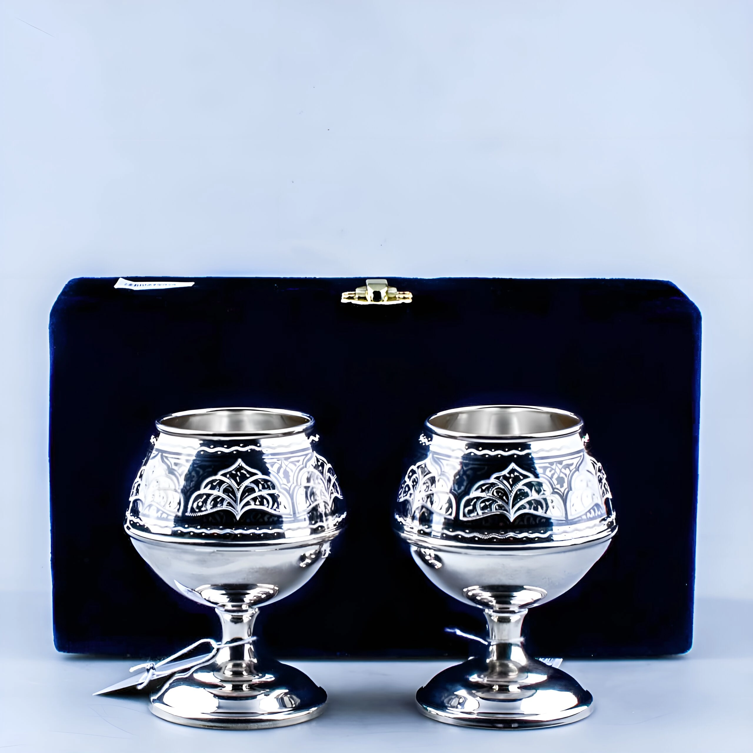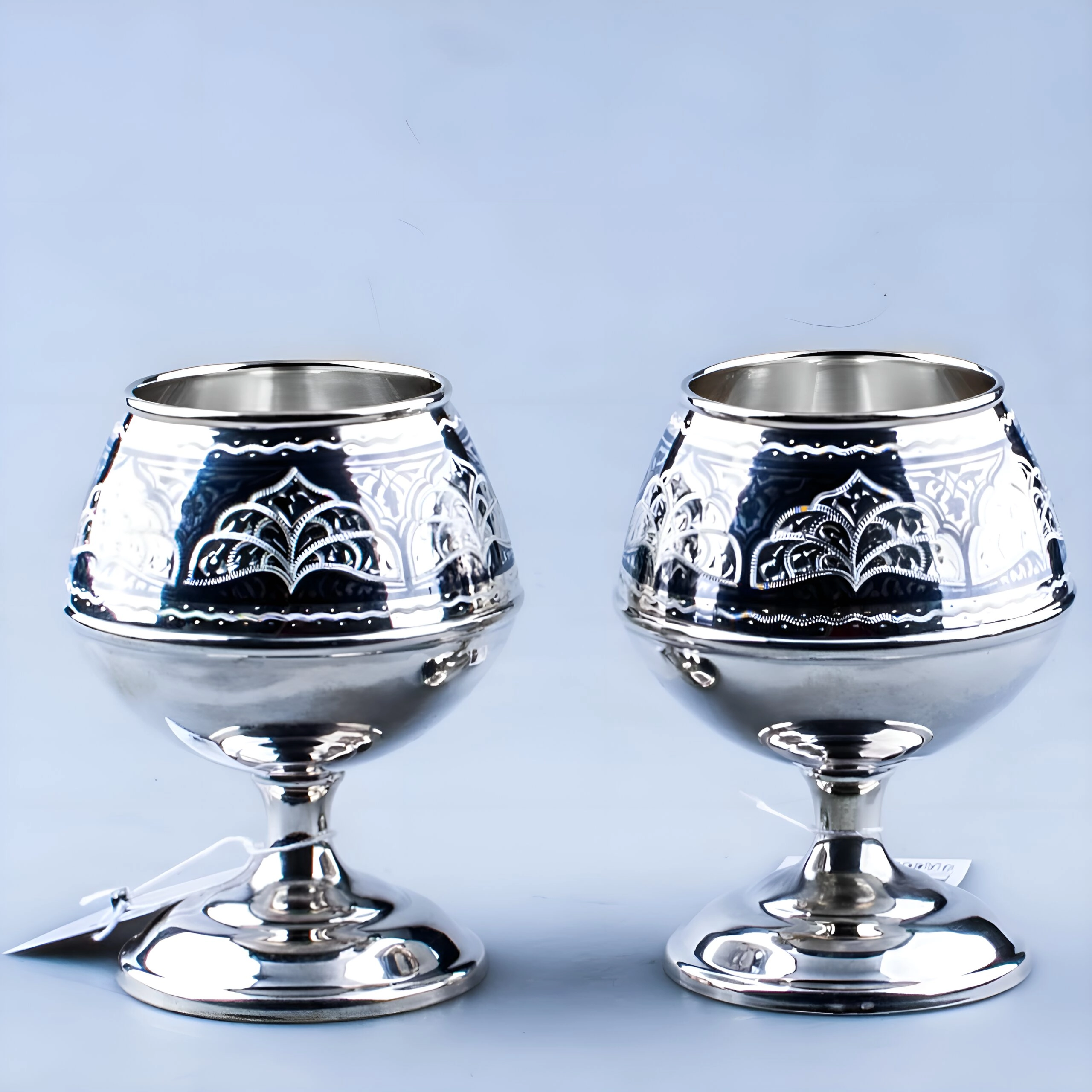 Форма бокалов специально разработана для коньяка. Прежде всего, она концентрирует ароматические вещества. Кроме того, серебро смягчает алкоголь. Следовательно, раскрывается весь букет напитка. Таким образом, дегустация становится совершенной. Поэтому эти бокалы особенно ценны.
