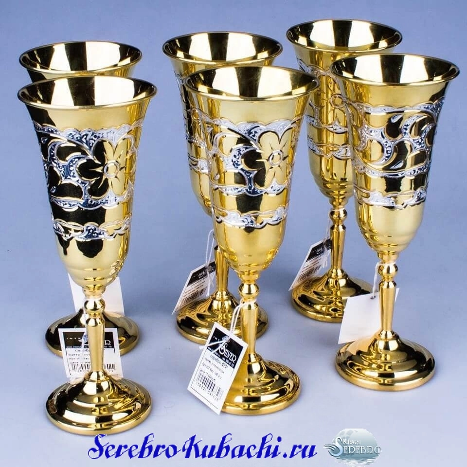 - Тип изделия: набор серебряных бокалов с позолотой