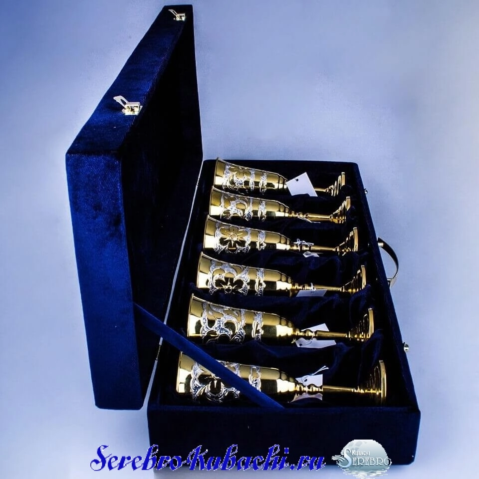 Набор серебряных бокалов с позолотой – впечатляющий и статусный подарок: