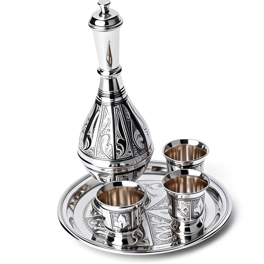 Серебро 875 пробы — идеальный материал для наборов для крепких напитков. Во-первых, оно обладает способностью естественным образом охлаждать содержимое. Во-вторых, ионы серебра мягко взаимодействуют с алкоголем, потенциально смягчая его вкус и уменьшая последствия. Кроме того, серебро гигиенично, не впитывает запахи и легко моется. Поэтому каждый глоток из такой посуды становится особенным. Наконец, это драгоценный металл, превращающий набор в семейную реликвию.
