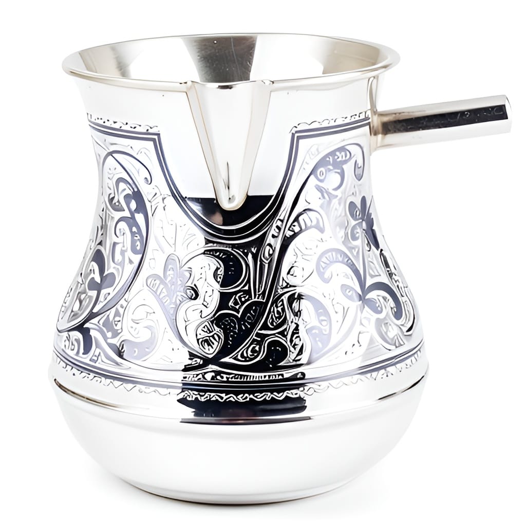 Турка сочетает функциональность предмета для приготовления кофе и художественную ценность изделия из серебра.
