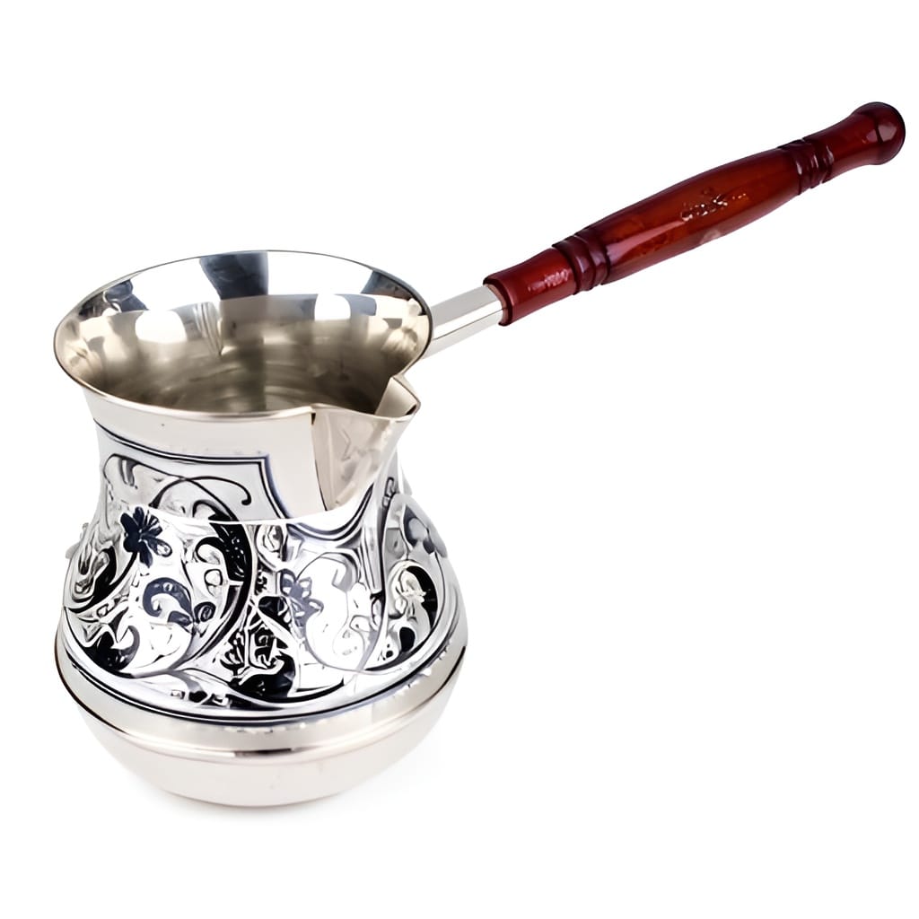- вся поверхность турки покрыта черненым орнаментом ручной гравировки;