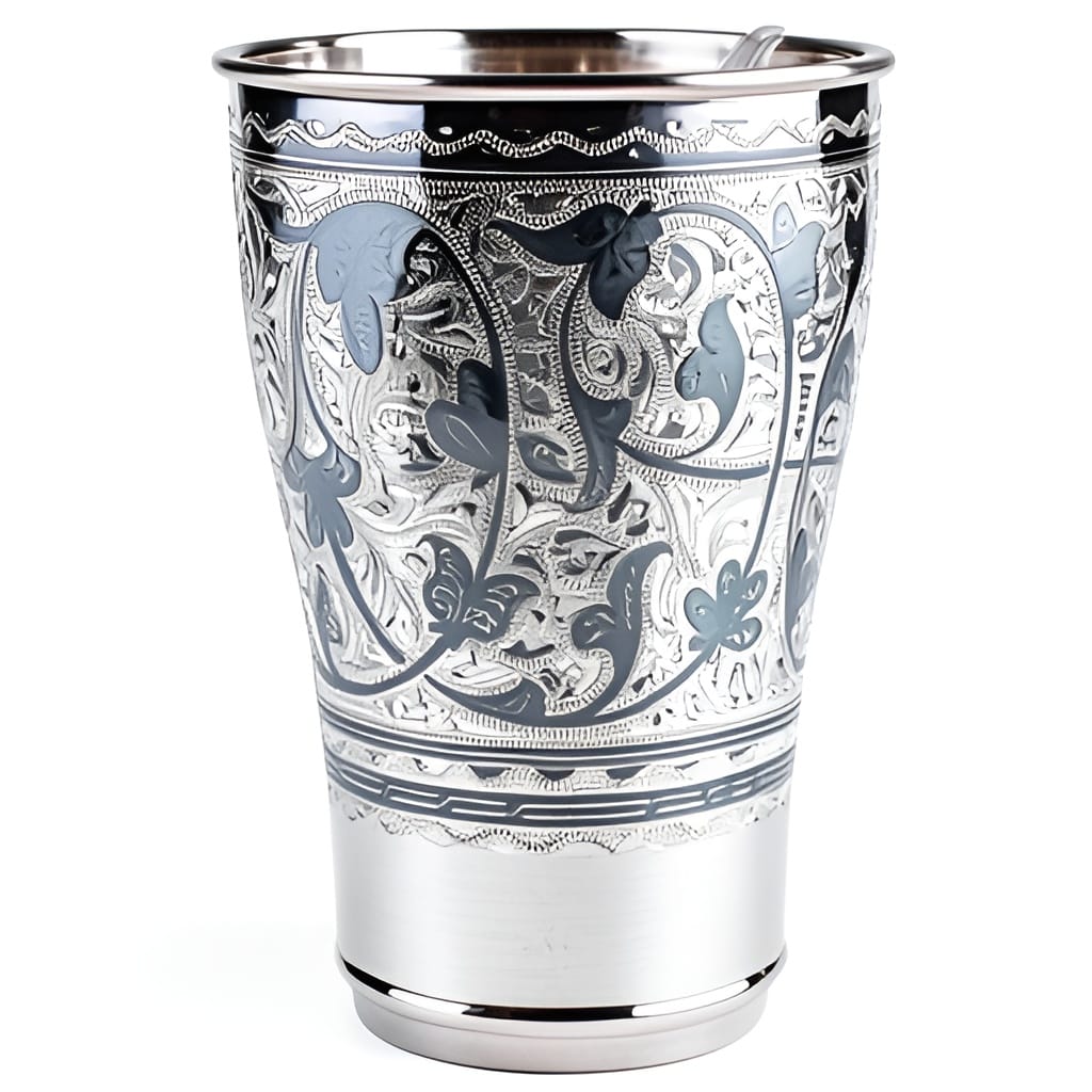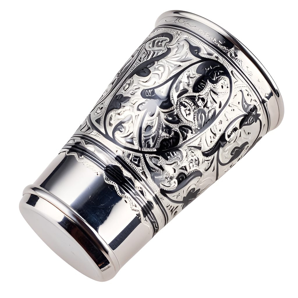 Серебряный стакан «Мархарай» большой серебряный стакан с гравировкой и чернением